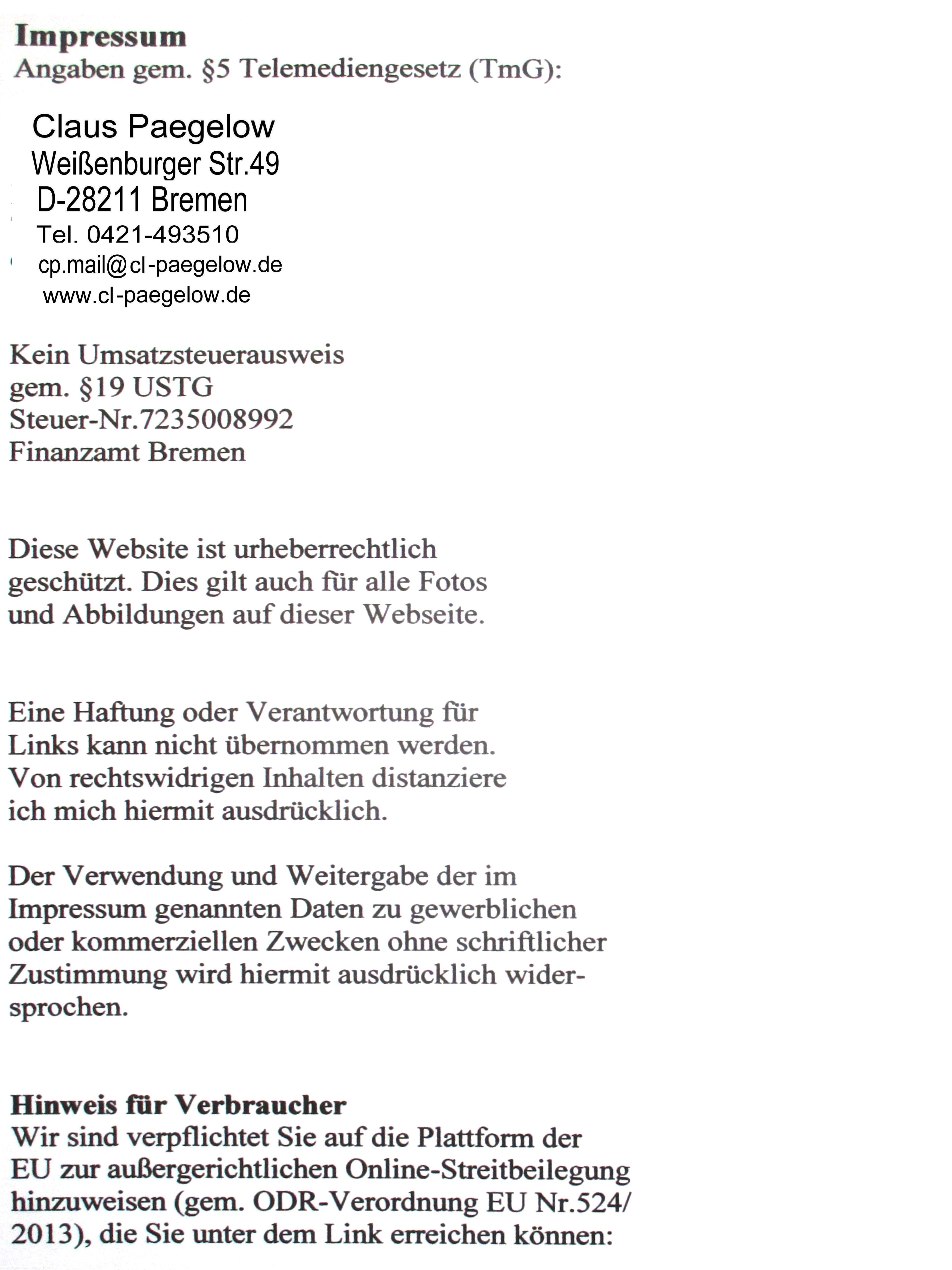 Unsere E-Mail-Adresse lautet cp.mail at cl-paegelow.de